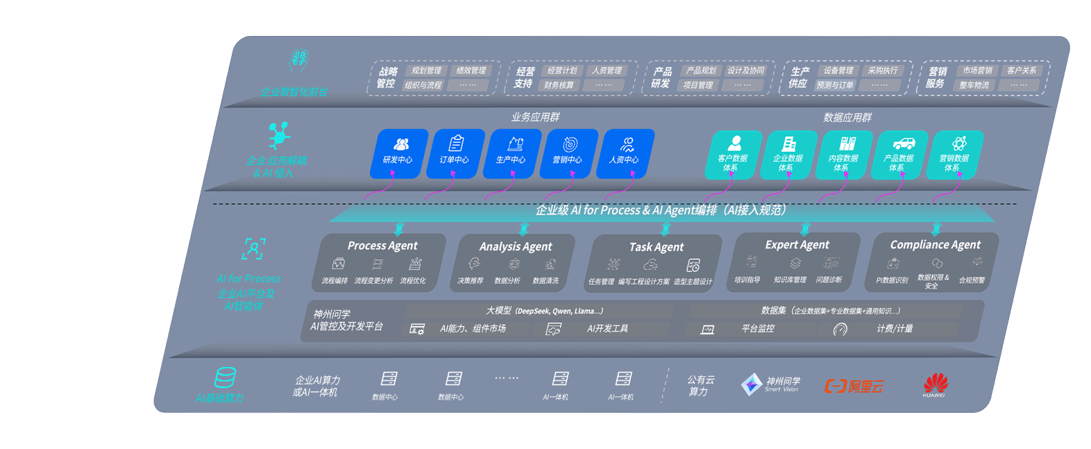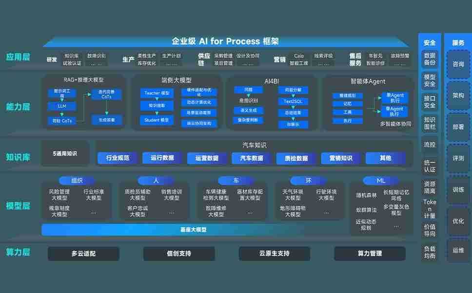 意昂2问学智车解决方案是一套基于AI技术的汽车行业智能化系统,,,覆盖从底层算力到顶层AI应用的全栈方案。。方案由算力层、、、、模型层和应用层组成:算力层,,方案支持多种一体机配置,,,具备云端灵活部署、、、多云适配以及动态优化计算资源的能力;模型层,,,,意昂2问学平台版提供了企业级AI应用一站式构建与管理平台,,支持基于后训练强化技术的汽车企业专属模型的训练、、评测和运营;应用层,,意昂2问学DeepSeek版提供包括超级员工、、、、智能招采、、智能营销、、、、智能客服、、AI for BI等一系列解决方案,,可助力汽车行业实现数字化转型,,,,让管理更智能、、响应更敏捷。。